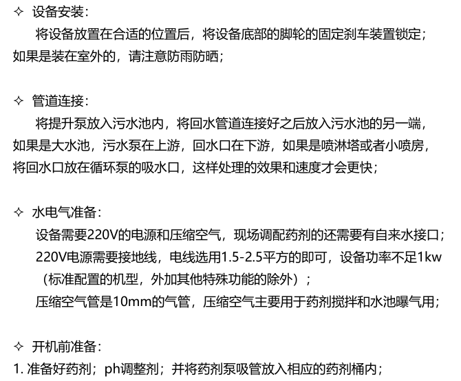 XH-1000型喷漆污水处理一体机操作说明,机器处理量(2-3m³/h)